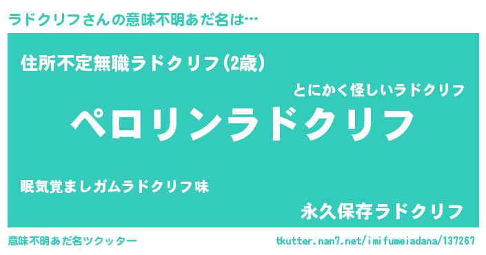 | 胡散臭い通販商品みたいなあだ名 | 『必ず成功する水晶球…その名も「ラドクリフ」』 |