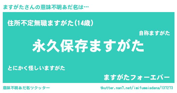 | 男性向けラノベタイトル風あだ名 | 『ますがたという概念が存在しない退屈な世界 』 |