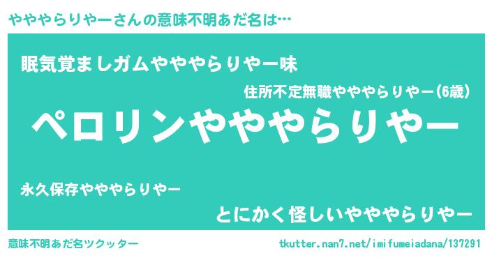 | ヒーロー風カッコイイあだ名 | 『スーパーヤヤヤラリヤー』 |