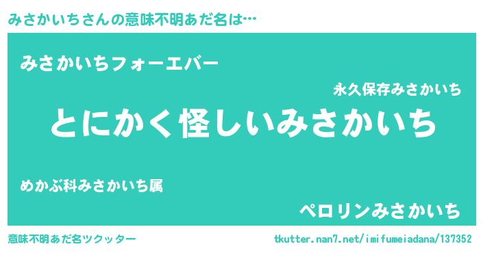 | 男性向けラノベタイトル風あだ名 | 『みさかいちの嫁は女の子じゃないと思った?』 |