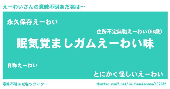 | ヘコむあだ名 | 『えーわい(笑)』『えーっぺ』『牛乳』 |