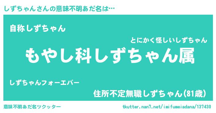 | ヒーロー風カッコイイあだ名 | 『最強戦士シズチャン』『仮面シズダー』 |