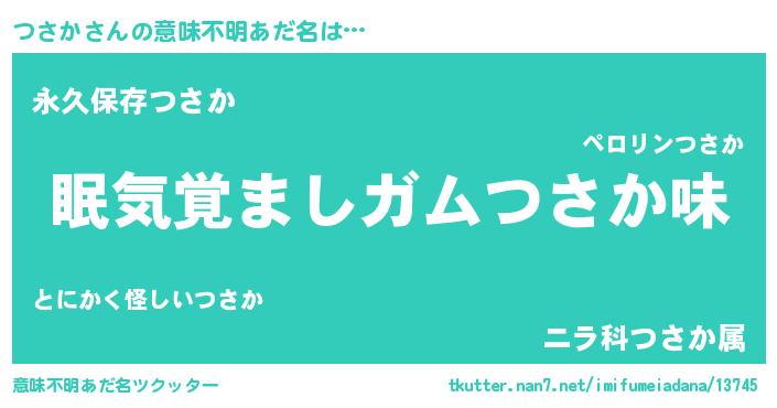 | ヘコむあだ名 | 『つさか(笑)』『つさにー』『つくし』 |