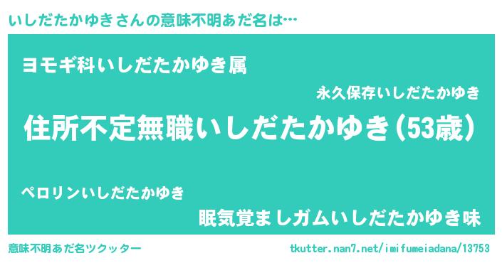 | 男性向けラノベタイトル風あだ名 | 『いしだたかゆきに滅ぼされるだけの簡単なお仕事です』 |