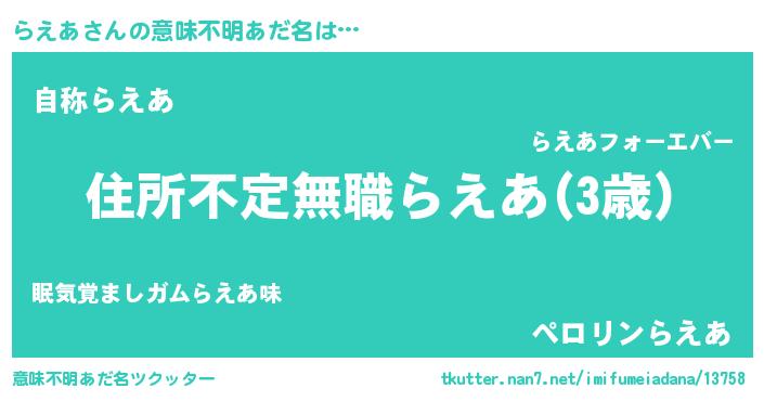 | ヘコむあだ名 | 『らえにー』『レバニラ』『らえお』 |