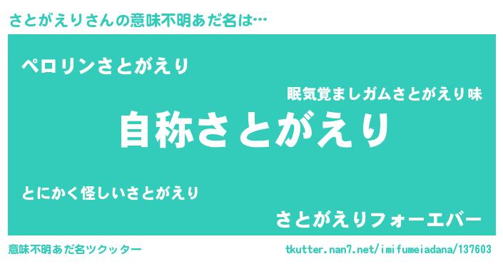 | 男性向けラノベタイトル風あだ名 | 『Re:さとがえりから始める異世界生活』 |
