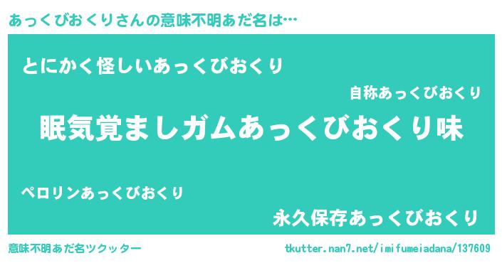 | 欧米人風あだ名 | 『ダニエルあっくびおくり』 |