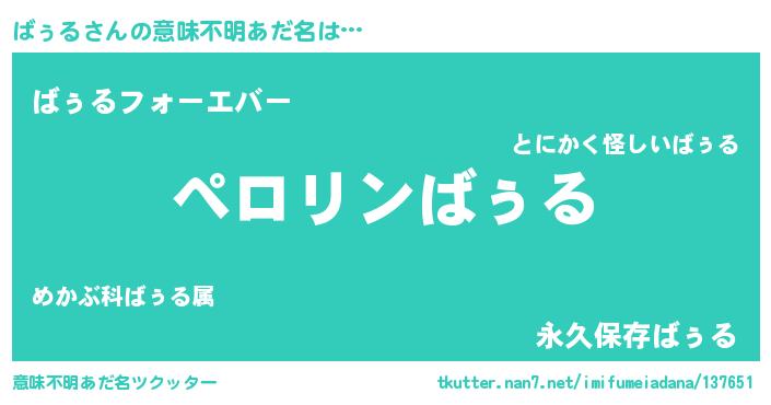 | ヒーロー風カッコイイあだ名 | 『スーパーバゥル』『ウルトラばぅるマン』 |