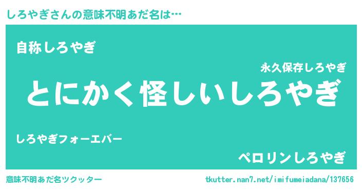 | ヘコむあだ名 | 『しろ太郎』『しろにー』『なまこ酢』 |