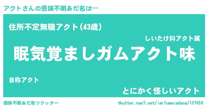 | ヘコむあだ名 | 『アクを』『アクにー』『アクト(笑)』 |