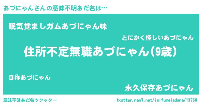 | 欧米人風あだ名 | 『あづにゃん・ステッグマイヤー』 |