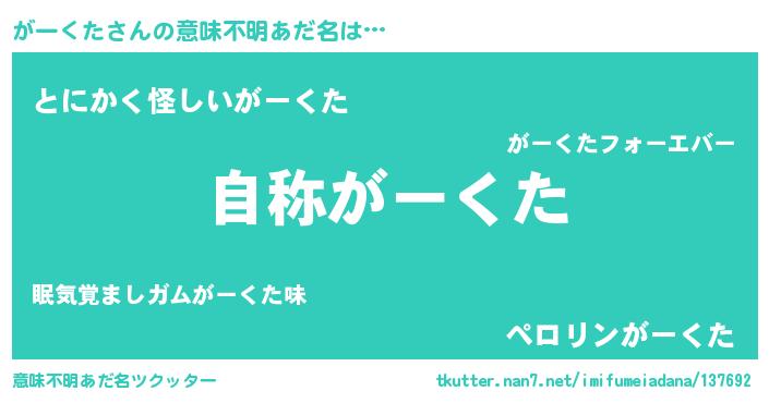 | 欧米人風あだ名 | 『がーくた・ステッグマイヤー』 |