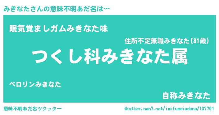 | ヒーロー風カッコイイあだ名 | 『慈愛の使者みきなた』『仮面ミキダー』 |