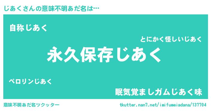 | 可愛いあだ名 | 『じあくママ』『じあうちぇる』 |
