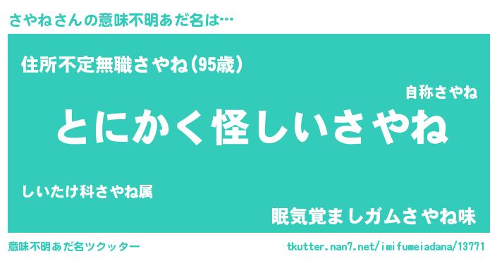 | 男性向けラノベタイトル風あだ名 | 『さやねの嫁は女の子じゃないと思った?』 |