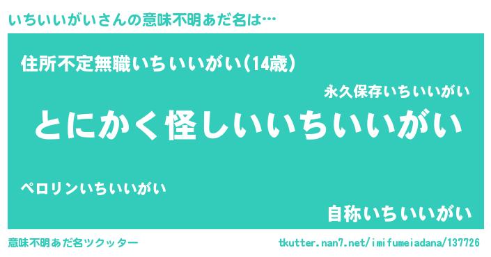 | 胡散臭い通販商品みたいなあだ名 | 『信頼と実績のサプリメント…その名も「いちいいがい」』 |