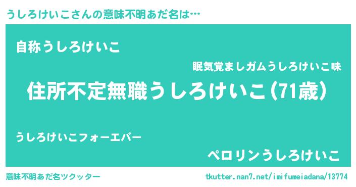 | 男性向けラノベタイトル風あだ名 | 『この素晴らしい世界にうしろけいこを!』 |