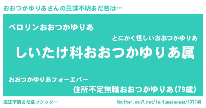 | 胡散臭い通販商品みたいなあだ名 | 『必ず成功する霊験あらたかなお札…その名も「おおつかゆりあ」』 |