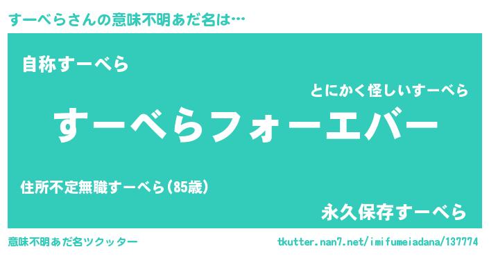 | 胡散臭い通販商品みたいなあだ名 | 『運命の人と巡り会える高級そうな壺…その名も「すーべら」』 |