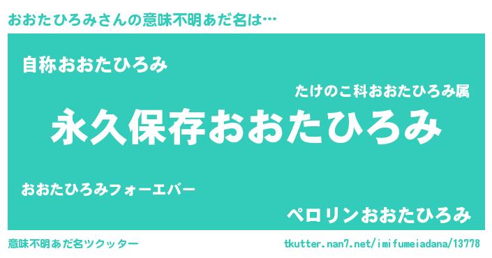 | 女子向けラノベタイトル風あだ名 | 『異世界で失敗しない100のおおたひろみ』 |