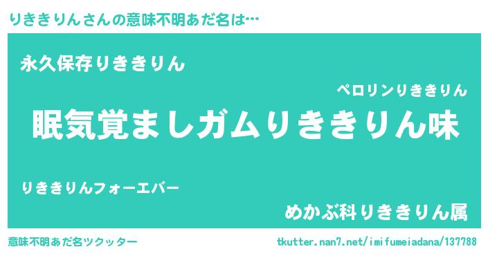 | ヘコむあだ名 | 『りききりん(震え声)』『りきにゅー』 |