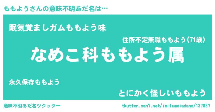 | 男性向けラノベタイトル風あだ名 | 『転生したらももようだった件』 |