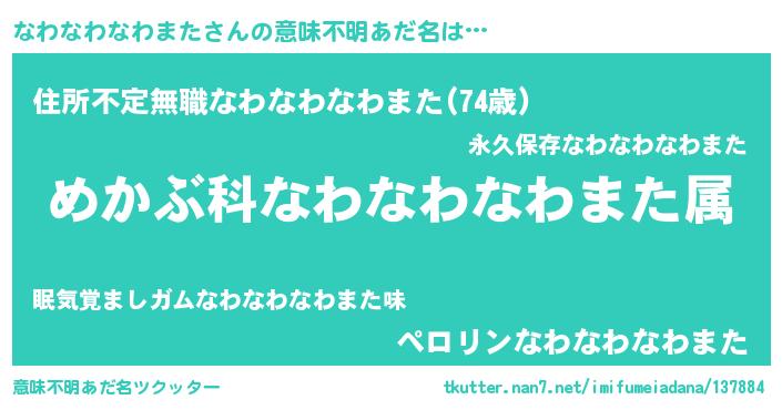 | ヒーロー風カッコイイあだ名 | 『仮面ナワダー』『ネオナワナワナワマタ』 |