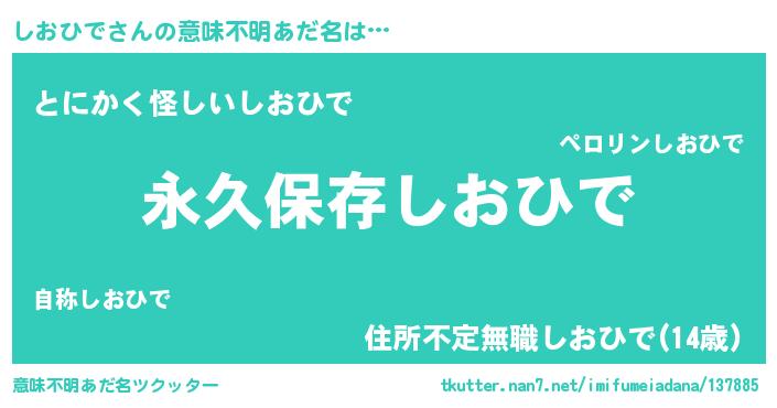 | 男性向けラノベタイトル風あだ名 | 『しおひでという概念が存在しない退屈な世界 』 |