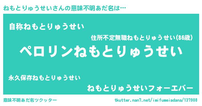 | ヒーロー風カッコイイあだ名 | 『スーパーネモトリュウセイ』 |