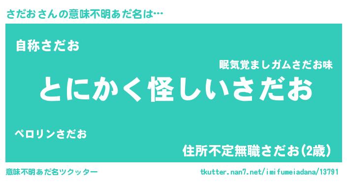 | ヒーロー風カッコイイあだ名 | 『魔戒騎士サダ』『最強戦士サダオ』 |