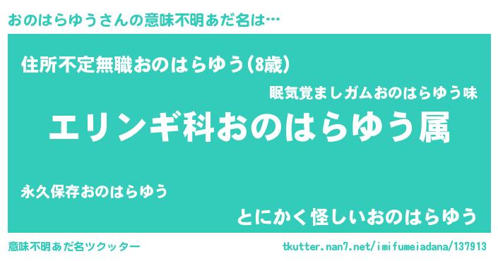 | ヘコむあだ名 | 『おのっ子』『おのはらゆう(笑)』 |