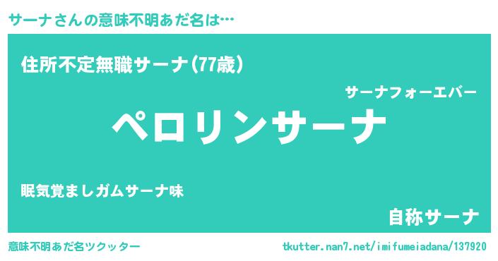 | 胡散臭い通販商品みたいなあだ名 | 『億万長者になれる霊験あらたかなお札…その名も「サーナ」』 |