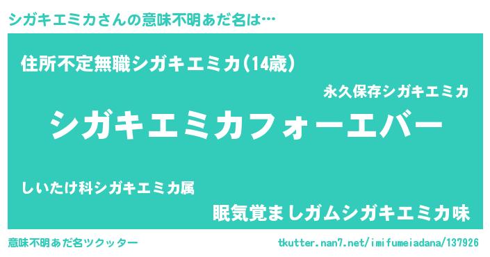 | ヒーロー風カッコイイあだ名 | 『ウルトラシガキエミカマン』 |