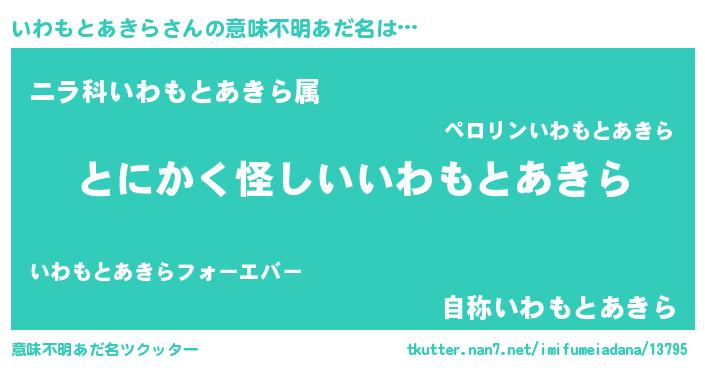 | 男性向けラノベタイトル風あだ名 | 『ダンジョンにいわもとあきらを求めるのは間違っているだろうか』 |