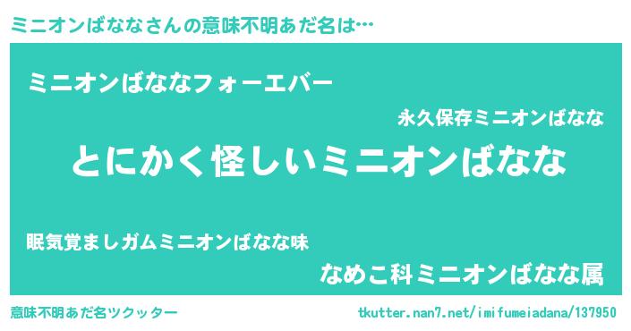| 男性向けラノベタイトル風あだ名 | 『ミニオンばななの嫁は女の子じゃないと思った?』 |