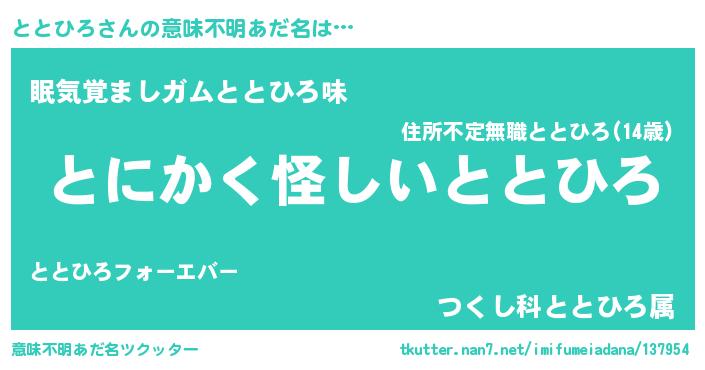 | ポケモン風あだ名 | 『ヒトトヒロ』『トックウザ』 |