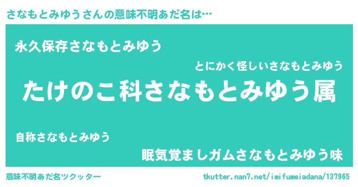 | 可愛いあだ名 | 『さなぷりん』『さなもとみゆうママ』 |