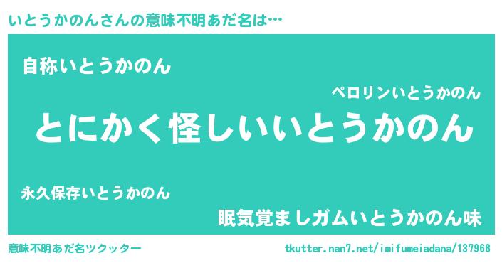 | 欧米人風あだ名 | 『いとうかのん・ステッグマイヤー』 |