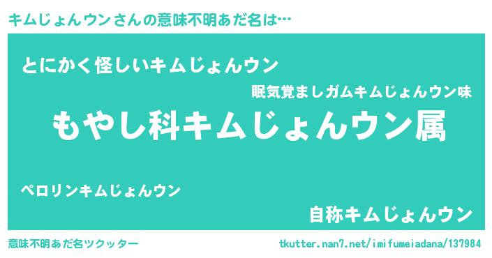 | 男性向けラノベタイトル風あだ名 | 『転生したらキムじょんウンだった件』 |