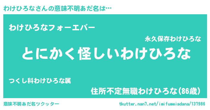 | ポケモン風あだ名 | 『ヒワケヒロナ』『ワケヒダネ』 |