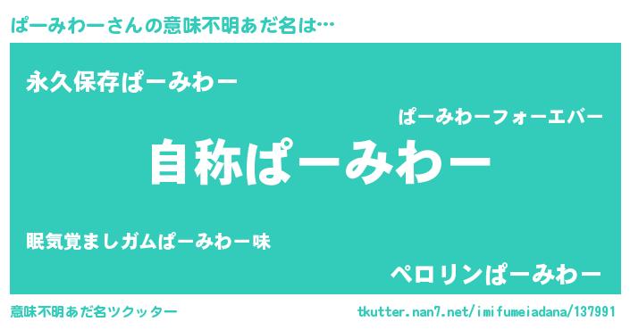 | 女子向けラノベタイトル風あだ名 | 『ぱーみわーなんてお断りですっ。』 |