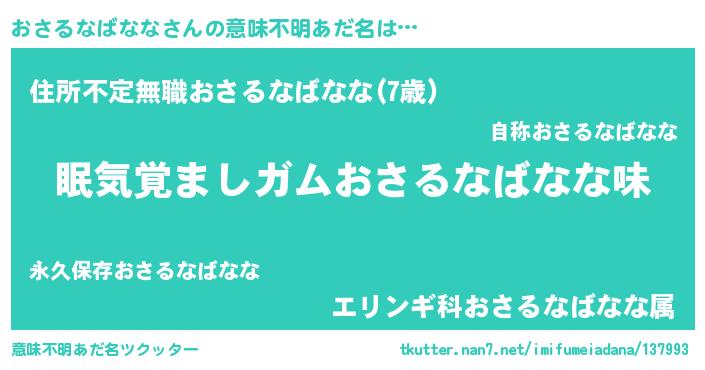 | ヘコむあだ名 | 『おさるなばなな(小並感)』『おさふぇ~』 |