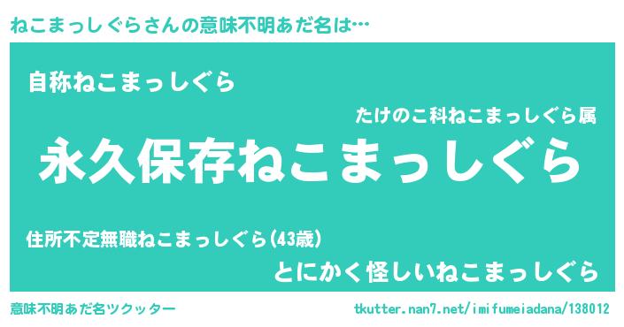 | ヘコむあだ名 | 『ねこまっしぐら(笑)』『ねこを』 |