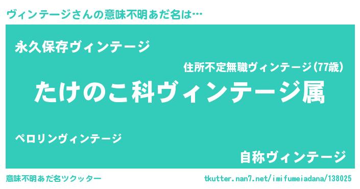 | 男性向けラノベタイトル風あだ名 | 『転生したらヴィンテージだった件』 |