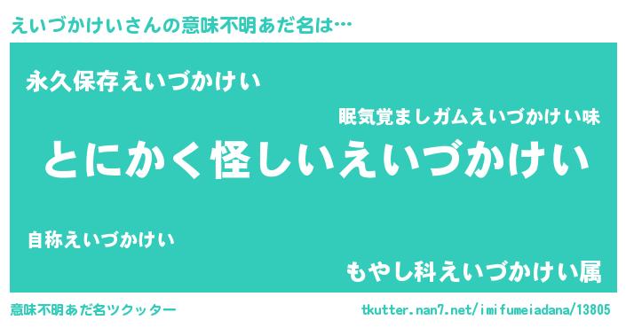 | 女子向けラノベタイトル風あだ名 | 『えいづかけいの卵を拾いまして』 |