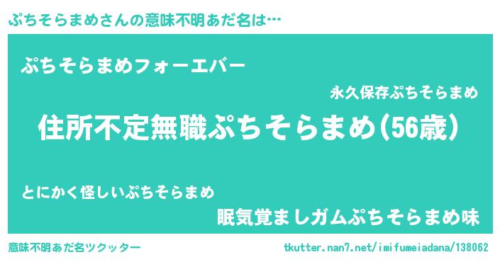 | 男性向けラノベタイトル風あだ名 | 『この素晴らしい世界にぷちそらまめを!』 |