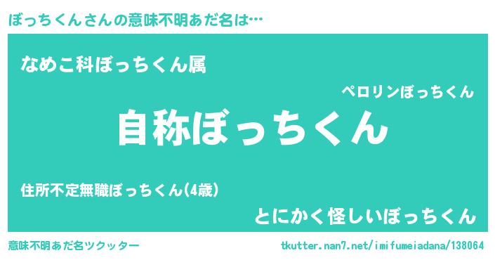 | 男性向けラノベタイトル風あだ名 | 『Re:ぼっちくんから始める異世界生活』 |