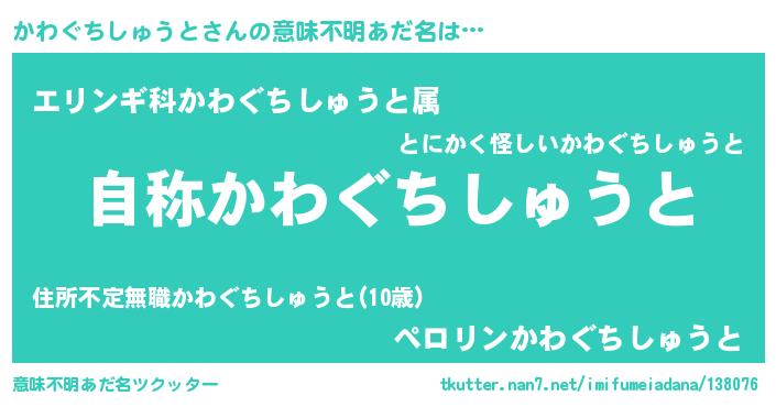 | 肩書あだ名 | 『かわぐちしゅうと総統』 |