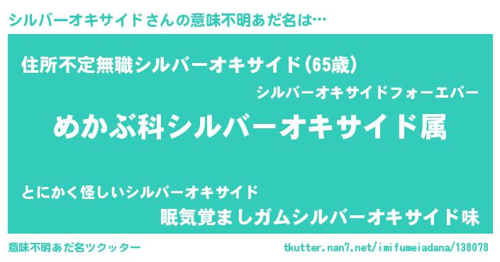 | 男性向けラノベタイトル風あだ名 | 『シルバーオキサイドスレイヤー』 |