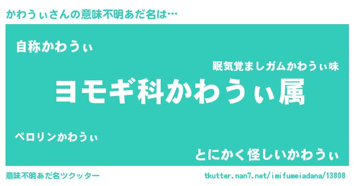 | ヒーロー風カッコイイあだ名 | 『究極戦士カワウィ』『幻影騎士カワ』 |